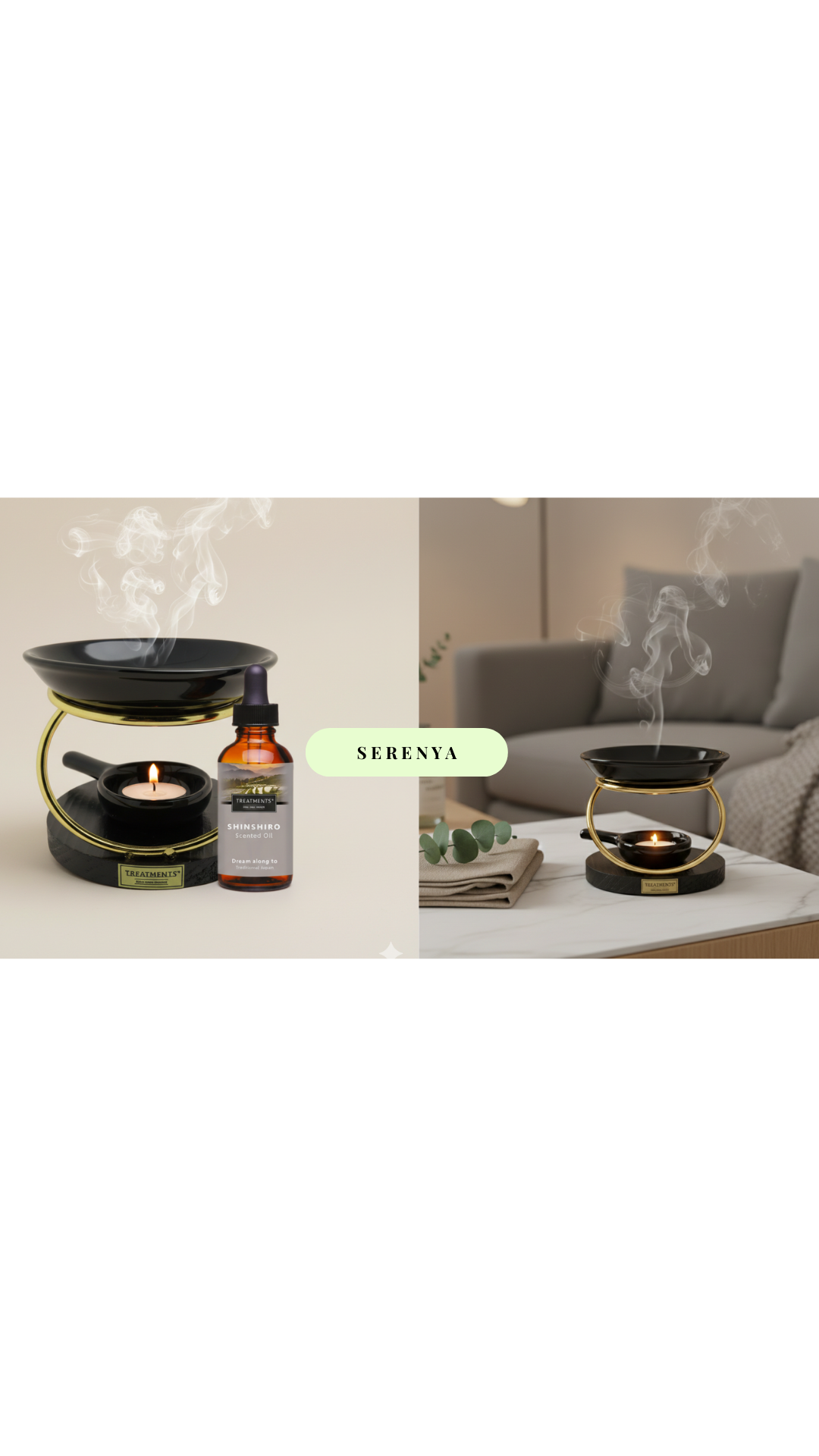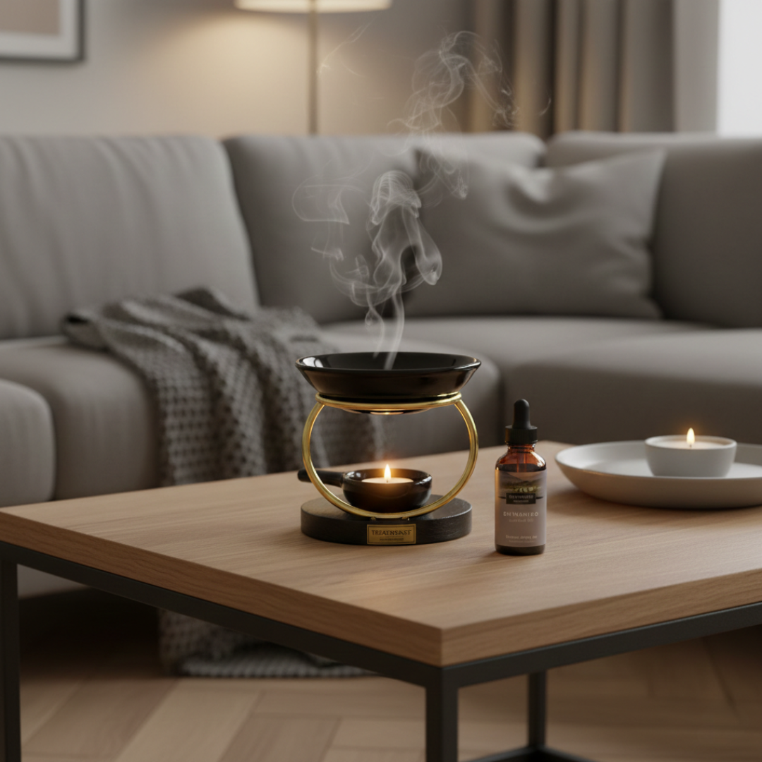 - L’Alchimie Visuelle : Le flacon ambré "Treatments" et le brûleur noir forment un ensemble cohérent, chic et mystérieux.